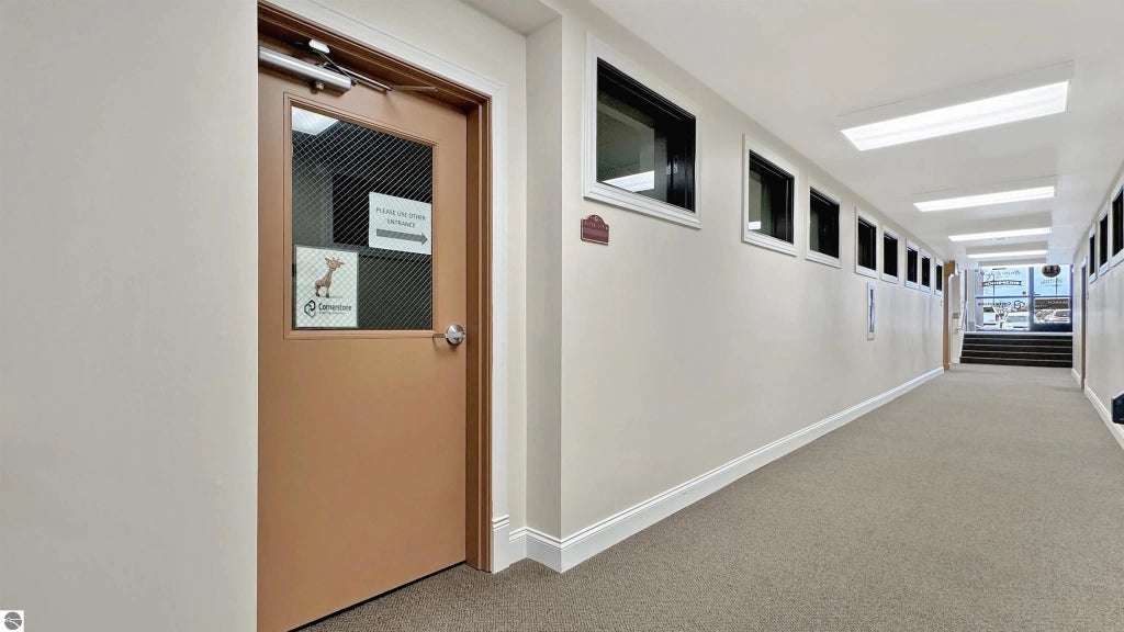 This modern office space in Downtown Cadillac offers access from Mitchell Street and a rear alley with parking access. An elevator provides barrier-free entry, or access to the hallway via only five steps. Currently, the 950 sq ft space accommodates flexible use with an open floor plan and a spacious store area. With strong retail above, this would also make for a great retail space. Come be a part of the vibrant Downtown Cadillac district!