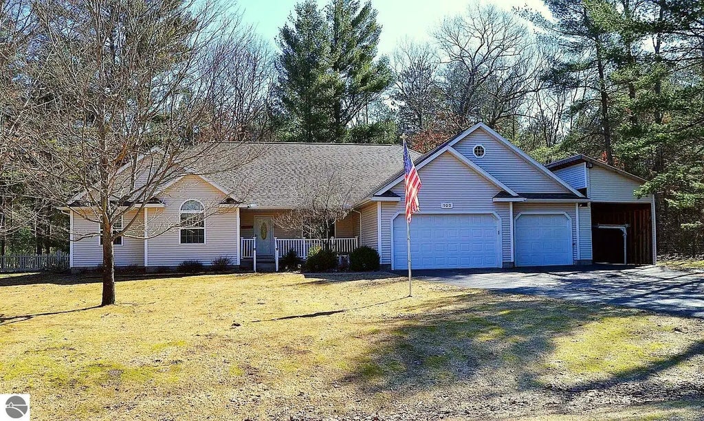 Consider this home as your next home, nestled in an upscale subdivision just 1.5 miles from the picturesque east shore of Higgins Lake, this stunning property offers the perfect blend of luxury and comfort. The home boasts 2200 square feet on the main level, complemented by a full finished basement, providing ample space for all your needs. Key Features include 4 bedrooms with primary suite, 4 Bathrooms, ensuring convenience and privacy for everyone, Vaulted Knotty Pine Ceilings, adding a touch of rustic elegance to the living spaces, 3 car attached garage and 12x26 high ceiling car port, great for boat or RV. Experience the amenities this home has to offer from the open floor plan to the partially covered back porch.