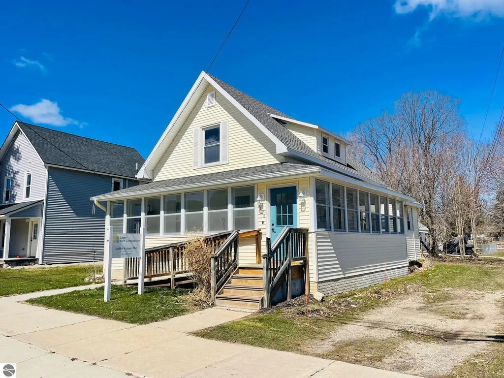 Unique home/business property located in the heart of Village of Central Lake which has been professionally and tastefully totally renovated from top to bottom while keeping the historical charm of this once Old Town School House. Main floor of house consists of all new kitchen, family room, bath, laundry and bedroom (currently used as business office) and amazing bright wrap around 3 seasons sun porch. Original woodwork trim and staircase has been preserved. Upper level with newly remodeled 2 bedrooms and 1/2 bath. Total house refurbishing includes new roof, siding, all windows, furnace with central air & humidifier, electric, plumbing, encapsulated basement, drywall, flooring, appliances and more. This is a must see property to be appreciated.