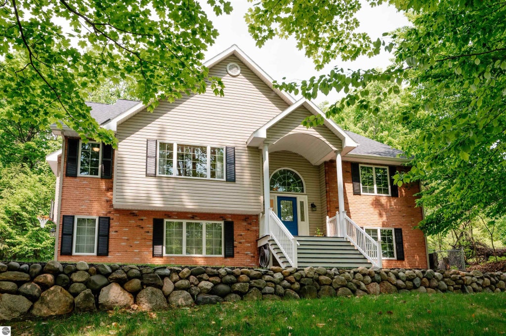 Leelanau County living with easy TC proximity! Located in the highly sought-after Outback Ridge neighborhood of Elmwood Township this 4-bedroom, 3-bathroom home offers 2,916 finished square feet of thoughtfully designed space, nestled in a serene, walkable neighborhood of established homes just minutes from downtown Traverse City. The heart of the home is a stunning living room with a gas fireplace with beautiful stonework extending to the ceiling. The spacious kitchen boasts abundant cabinetry, granite countertops, stainless steel appliances, and a new dishwasher, making it a chef’s delight. The main level features the primary suite and two additional bedrooms along with a full bath and large laundry room. The primary suite includes dual walk-in closets and a spa-like ensuite with gorgeous tile work and a tiled walk-in shower. Downstairs, a walkout lower level provides a 4th bedroom or office, full bath, and additional living space — perfect for guests or a home office setup. Car enthusiasts and hobbyists will love the 3-car garage with workshop space. Step outside to enjoy beautifully maintained landscaping, extensive decking, and a tranquil outdoor oasis ideal for relaxing or entertaining. Major updates include: New roof (2024); New boiler & BoilerMate (2023); New water pump (2024); New sliding door in lower level (2021). The location offers easy access to amenities, restaurants and recreation in both Leelanau and Traverse City… Stroll through the neighborhood to Elmwood Township Park (<1 mile) with playgrounds, tennis courts, and ball fields. Access the TART Trail just 1.1 miles away for biking, walking or winter time XC skiing. Enjoy top local dining with Farm Club just 4.5 miles away, West End Tavern only 1.5 miles, and shop nearby at Tom’s West Bay Grocery (2.8 miles).
