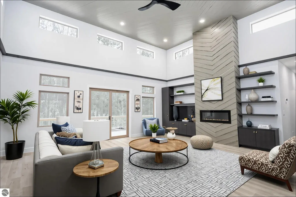 Utilities included in rent Nearly New Rental at 1846 Alpine Dr unfurnished Mid-Century Modern Retreat Step into luxury at 1846 Alpine Dr, nestled at the base of the serene Old Mission Peninsula in Traverse City, Michigan. This nearly new, unfurnished 3-bedroom, 2-bathroom home is available for a 12-month lease and blends mid-century modern, Craftsman, and contemporary design with comfort and functionality. As you enter, you'll be greeted by an expansive, light-filled living area with soaring celestial windows and a stylish electric fireplace framed with warm wood detailing. The ambiance continues throughout the home, elevated by white oak-style vinyl plank flooring and a sleek, modern kitchen featuring dark wood slab-front cabinets, new appliances, and quartz countertops. The primary suite offers a peaceful retreat with a walk-in closet and an en-suite bathroom showcasing a tiled shower and a unique window that provides a private view of the surrounding greenery. Outside, enjoy the tranquility of a private, wooded lot from the wrap-around deck, complete with modern stainless cable railing. Parking is available on the gravel drive; however, garage use is reserved for landlord storage. Location & Amenities: Located in a quiet, upscale neighborhood just 2 miles from downtown Traverse City Wineries, restaurants, East Bay and Bryant Park beaches, and trails are all within a mile or two Easy access to the natural beauty of Old Mission Peninsula Leasing Details: 12-month lease at $3,700/month $3,700 security deposit due at signing Utilities included: Gas, electric, garbage service, snow plowing, cable, and internet Tenants are responsible for shoveling walkways and decks Credit check required, with a minimum credit score of 650 Maximum of 4 occupants Dogs considered with a $300 non-refundable pet fee Rent must not exceed 40% of household income No smoking permitted on the premises