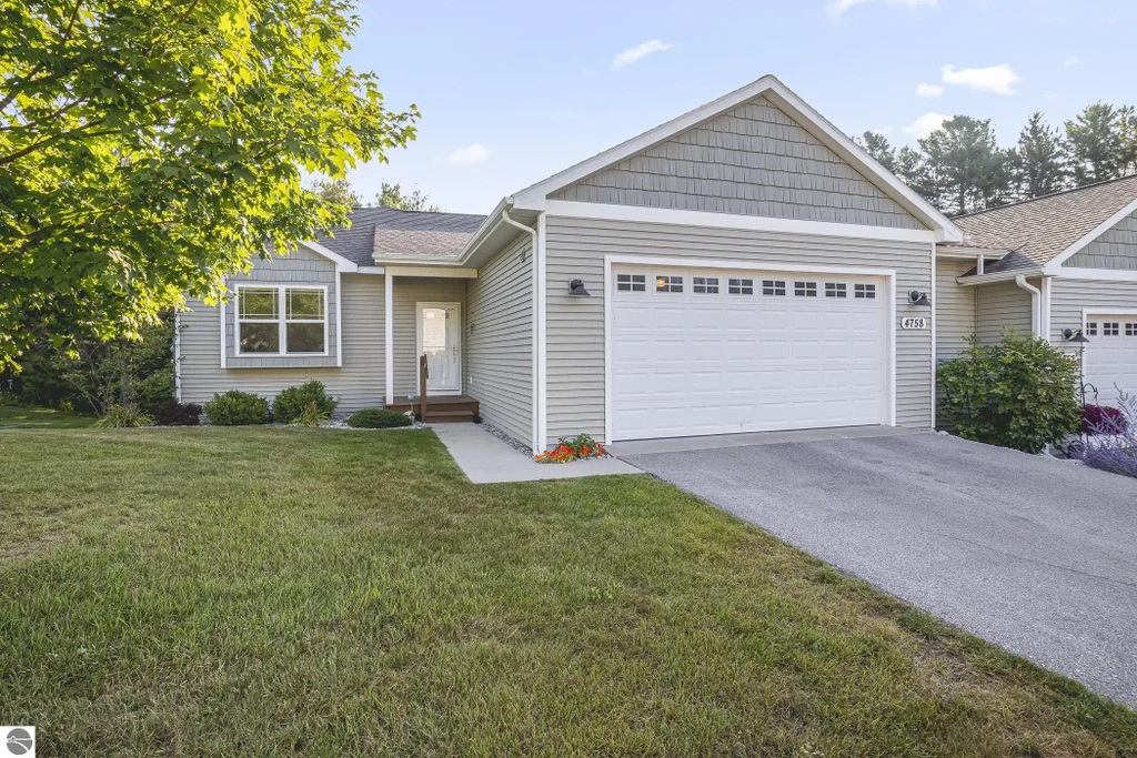 Enjoy UpNorth living in this West Side condo just minutes from downtown Traverse City and less than eight minutes from Munson Hospital. This freestanding duplex design has NO SHARED WALLS to any living space! Tall ceilings throughout the main living area create an expansive, open, and welcoming atmosphere, while French doors off the living room lead to a covered deck overlooking peaceful wooded scenery. This immaculate 5-bedroom, 2 ½-bathroom condo features an open floor plan that seamlessly connects the living room, dining area, and kitchen—perfect for gatherings and entertaining. The main floor includes an owner’s suite with a private bath and walk-in closet, convenient laundry, and a 2-stall garage with extra storage. The finished lower level provides three additional bedrooms, a full bath, a second living area, and a walk-out to the outdoors. With five bedrooms in total, you’ll have the flexibility to create hobby rooms, a private office, a cozy reading nook, a media or gaming room, or dedicated guest space—tailored to your lifestyle needs. With comfort, versatility, soaring ceilings, and beautiful views, this home is move-in ready.