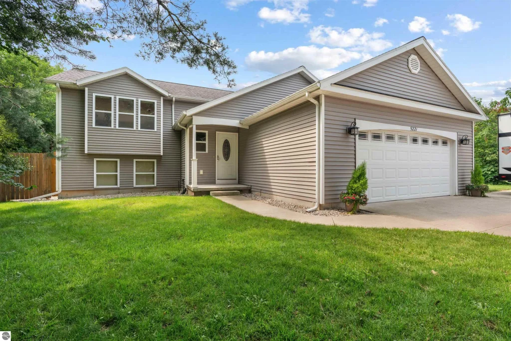 Welcome to this spacious 3-bedroom, 2-bath walkout home on nearly a half-acre, where privacy meets convenience. The park-like backyard, bordered by native plants, offers serene views of a neighboring horse farm, while Bay Meadows Golf Course sits just out your front door. Inside, a large entryway, wide stairwells, and direct garage access to the entrance level give this bi-level home a unique and untraditional feel. The open floor plan is perfect for gathering, with a new slider leading from the upper-level deck to overlook the broad yard. Thoughtful extras abound—whole-house and yard speaker system, full in-home theater for streaming your favorite movies, hot tub pad with electrical hookup, irrigation system, deep garage, extra-wide driveway, and more. The lower-level walkout offers easy access to the fenced yard for Fido or evenings around the firepit. All just minutes from Munson Medical Center, downtown Traverse City, restaurants, shopping, trails, and parks. Move-in ready and full of features you’ll love—this one is a must-see!