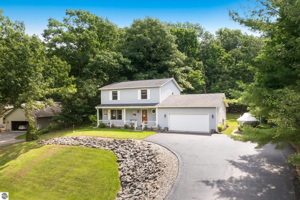 Move-In Ready Colonial in English Woods! Discover this beautifully maintained 4-bedroom, 2.5-bath home tucked away on a private, wooded .72-acre lot in one of Traverse City’s most sought-after neighborhoods. The layout is practical yet inviting, with spacious living areas and a kitchen that offers plenty of storage and a handy pantry—perfect for busy mornings or weekend entertaining. Upstairs: You’ll find three comfortable bedrooms, including a spacious primary suite with its own en-suite bath. Lower level: A fourth bedroom, craft room, and a second living room—ideal for guests, hobbies, movie nights, or a home office setup. Step outside to your peaceful backyard oasis. Enjoy the large deck for summer BBQs, a parking pad for your boat or extra vehicle, and an attached 2-car garage with a workshop area. Best of all—the hot tub stays with the home, giving you the perfect place to unwind after a long day. All this, plus you’re just minutes from downtown Traverse City, schools, shopping, dining, and outdoor recreation. Don’t miss your chance to live in English Woods—schedule your showing today!