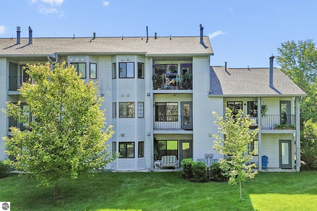 Freshly updated, sunny and sparkling clean Riverine Condo. Featuring a primary suite, a guest bedroom and bathroom, as well as a flex space for dining or office. Location is perfect for enjoying the outdoors, with shared river frontage to pop on your paddle board, or kayak the Boardman River and Lake. Living in downtown Traverse City, you will be walkable or bikeable to the beach, restaurants, music venues and shopping, as well as Oryana. Gorgeous new floors throughout, modern new kitchen with updated appliances, cabinets and a new counter top. The primary suite is spacious, with a beautifully updated bathroom. Low maintenance and move in ready, welcome in!