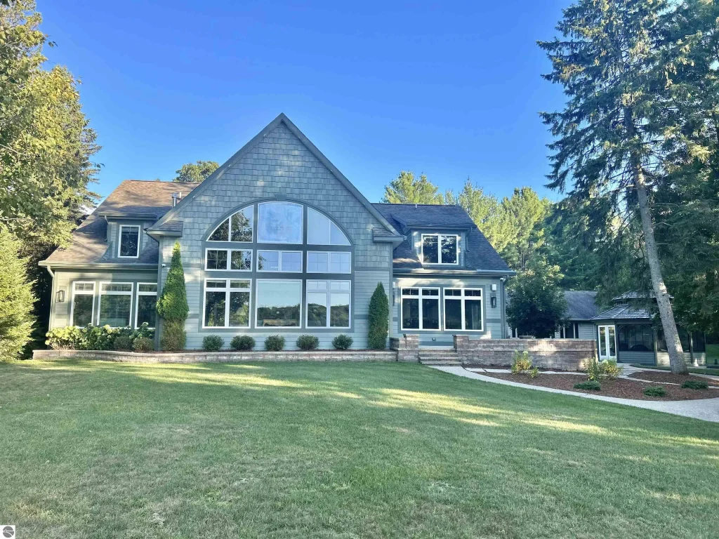 Wake up every morning in your dream vacation destination with this made-to-host , all sport, lakefront home with true luxury finishes and features. Brick wraparound patio and lawn seamlessly transition into direct access to 200 feet of private beach front, so no steps are needed to get to the beach and dock. Countless custom crafted details in the home echo the beauty of the famously “Caribbean blue” Big Blue lake, including floor-to-ceiling picture windows in the living room looking out over the water and stunning lake-blue granite countertops in the elegant kitchen. Every space is styled with timeless quality and design, from the beautiful hardwood floors and masterful tile work to gorgeous masonry on the indoor fireplace and stunning custom kitchen cabinetry. But this home isn’t just beautiful; it was designed to be enjoyed. The main house is a 4 bedroom, 4 bath with an exquisite, large kitchen and beyond beautiful living room with an up North wood ceiling and natural gas fire place. Just outside of the dining room, is the patio to entertain or relax outside. Rinse off the sand using the outdoor shower before coming inside to dry off in the sauna. Lounge in the air-conditioned and enclosed gazebo to have the best of both worlds. Everyone will want to visit, and there’s room for them to stay since the detached 3-bed guest house is just a few steps away from the main house and has its own attached garage. The home also has a geothermal heating and cooling system, with in floor heat on the main level and attached garage. Did I mention, you would own 200 private feet on an all sport gem of a lake with the dock included? Get ready to enjoy evenings by the fire at the water side and let your worries fade away. All information deemed accurate, but should be verified