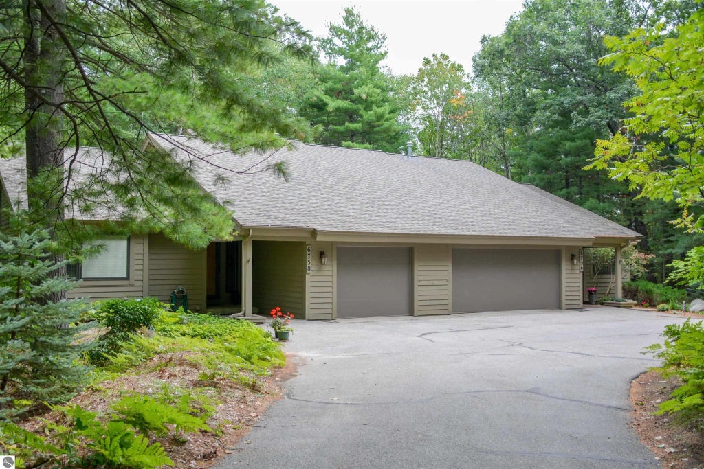 Discover this exquisite, light-filled 2,800+ sq ft luxury condo tucked away among mature trees in the prestigious Port of Old Mission, offering enchanting seasonal views of the Grand Traverse Bay. This meticulously maintained residence features two well-appointed bedrooms on the main level, primary bedroom boasting oversized jetted tub and walk in shower, two cozy fireplaces, generously proportioned rooms, serene balcony, and numerous premium amenities. The property includes a spacious 2-car garage and is thoughtfully designed with handicap accessibility throughout. Perfectly positioned at the Base of Old Mission Peninsula just 4 minutes from downtown's vibrant shopping, diverse dining options, and beautiful beaches. Click on tour link for an incredibly realistic view of the interior