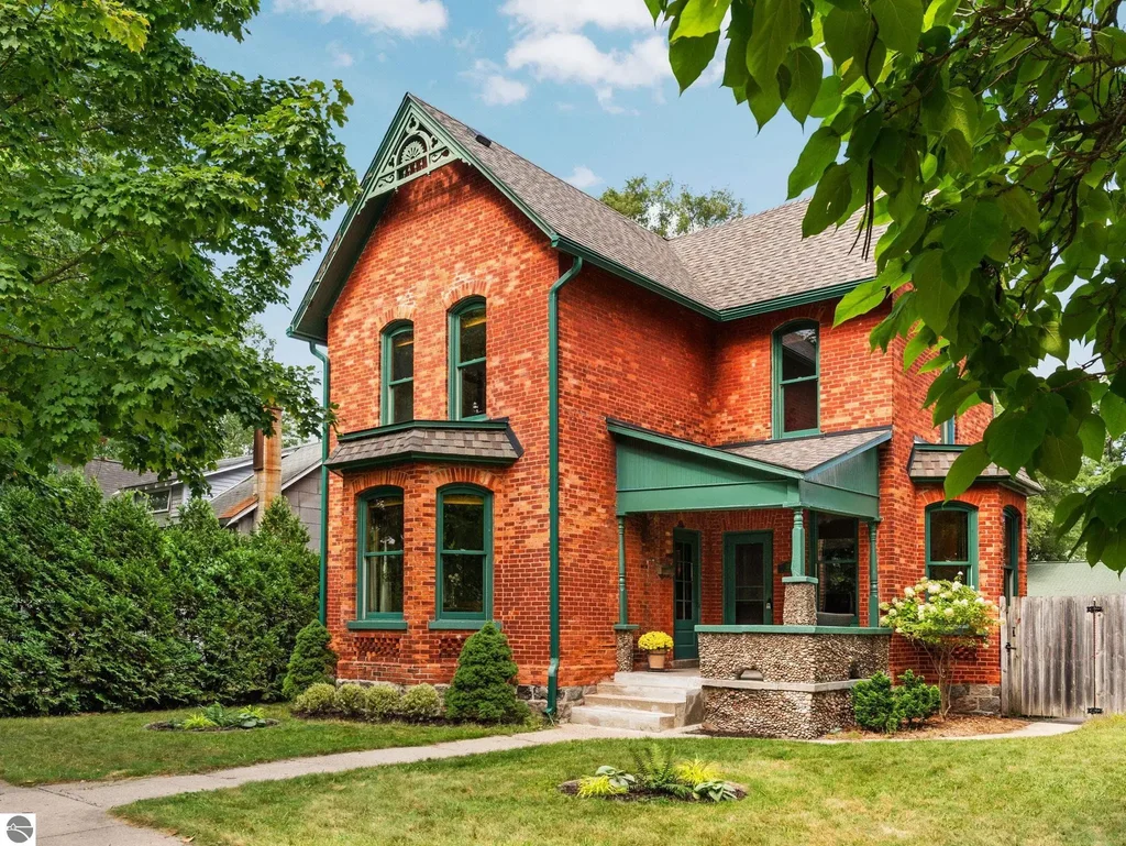 Historic charm meets thoughtful modern living in this beloved 1870s farmhouse - an iconic piece of Traverse City history that lives as beautifully as it looks. Known as the Thirlby farmhouse, this rare downtown residence sits on three city lots and has been beautifully renovated to blend original character with timeless updates. Inside, you’ll find three bedrooms and three full baths across a bright and inviting floor plan. The kitchen is a standout - completely reimagined with granite countertops, custom cabinetry, and stainless steel appliances - while still honoring the home’s roots. Exposed brick, original wood floors (mixed with newer additions), and custom woodwork lend warmth and texture throughout. The spacious primary suite features a raised ceiling, eye-catching brick accent wall, and a brand-new private bath. A cozy loft space offers flexibility - ideal for a home office, reading nook, or playroom. A fenced backyard and room to garden or entertain offer even more to love, and the detached 2+ car garage has plenty of room for bikes and kayaks – perfect as the house is in close proximity to Boardman Lake, the Commons, and downtown.