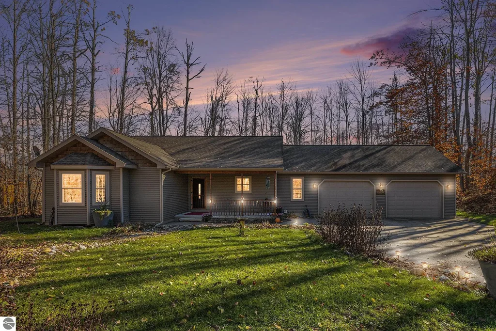 Beautifully updated 3 bed, 2 bath ranch with attached garage. Garage has a drive through door to fenced in backyard. Newly updated kitchen with large island and quartz countertops. Generac generator. Back deck is wired for hot tub. This house is within Lakes of the North. LON is a relaxed HOA that has a golf course, lots of snowmobile and ATV trails, clubhouse with pool, hot tub and exercise equipment