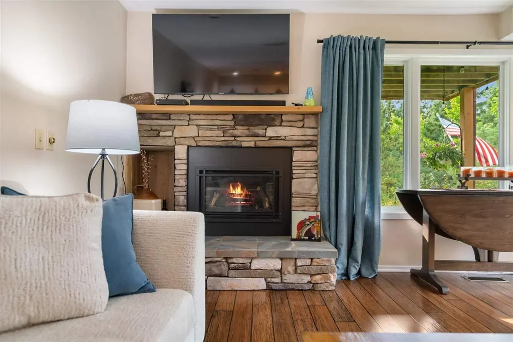 Discover your perfect retreat at Trout Creek! This cozy, warm 2 bedroom, 2 bath condo features an open layout with a great room that combines kitchen, bar area, and living room - ideal for entertaining or relaxing by the beautiful gas fireplace with stone surround. Thoughtfully renovated with fresh laminate flooring, new countertops, new sinks, and the gas fireplace, recent fresh paint, an enclosed entryway for added privacy, and a completely redone master shower. The kitchen showcases modern stainless steel appliances and updated lighting, while both bathrooms feature new flooring, stylish vanities, and elegant quartz countertops. The primary bath's walk-in tile shower creates a spa-like retreat. Enjoy easy access to the outdoors with a large deck, accessible from both the living room and primary bedroom, perfect for morning coffee or evening relaxation. A convenient one-car garage provides parking plus valuable storage space. Embrace carefree condo living with no yard work, snow removal, or exterior maintenance worries, plus enjoy amazing Trout Creek amenities including heated pools, hot tubs, fitness center, hiking/snowshoe trails, tennis and pickleball courts, fishing ponds, and sauna. Perfect for a primary residence or second-home owner looking to purchase in a fun community, this is the place. Short-term rentals are allowed through the on-site rental management program, or you can manage your own rental. Sold mostly furnished, turn key. Located just minutes from Harbor Springs and Petoskey, with a complimentary shuttle to Nub's Nob Ski Resort just down the street. Ready to call Trout Creek 65 home? Schedule your showing today!